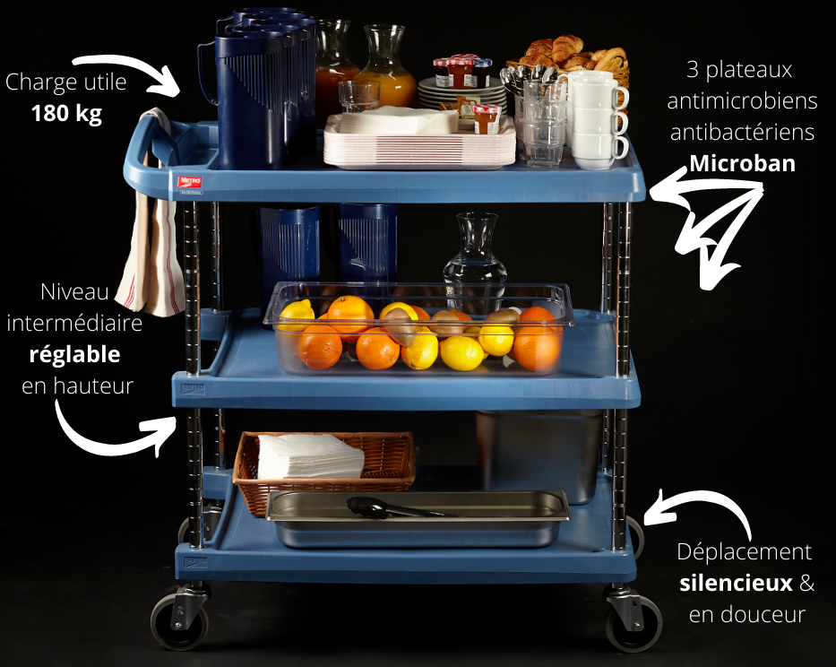 Chariot polymere à plateaux réglables antibactérien 86x55 cm (Réf. 323603)