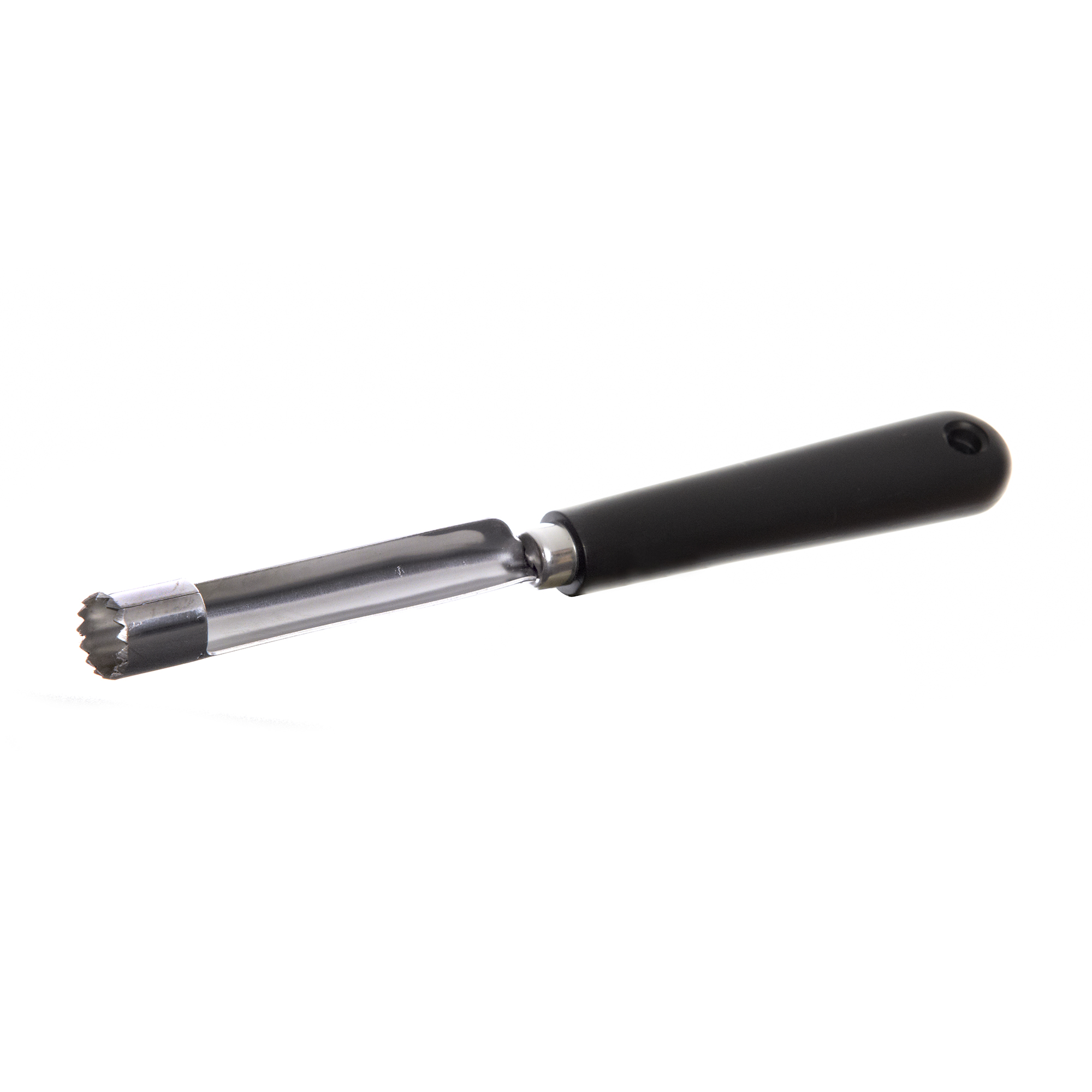 Permet d'ôter toute la partie centrale du fruit qui contient la queue, son prolongement et les pépins. Embout cranté.
