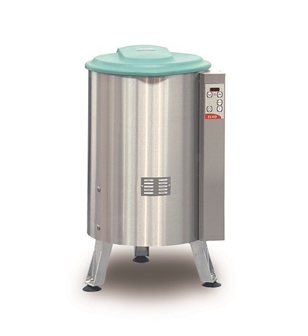 Pour essorer 5 kg de légumes ou 9 têtes de salade. Cycle automatique d'essorage : un avec rotation et arrêt du panier pour défoulage, l'autre sans défoulage pour produits fragiles. Sécurité à l'ouverture du couvercle. Tableau de commande plat et étanche.