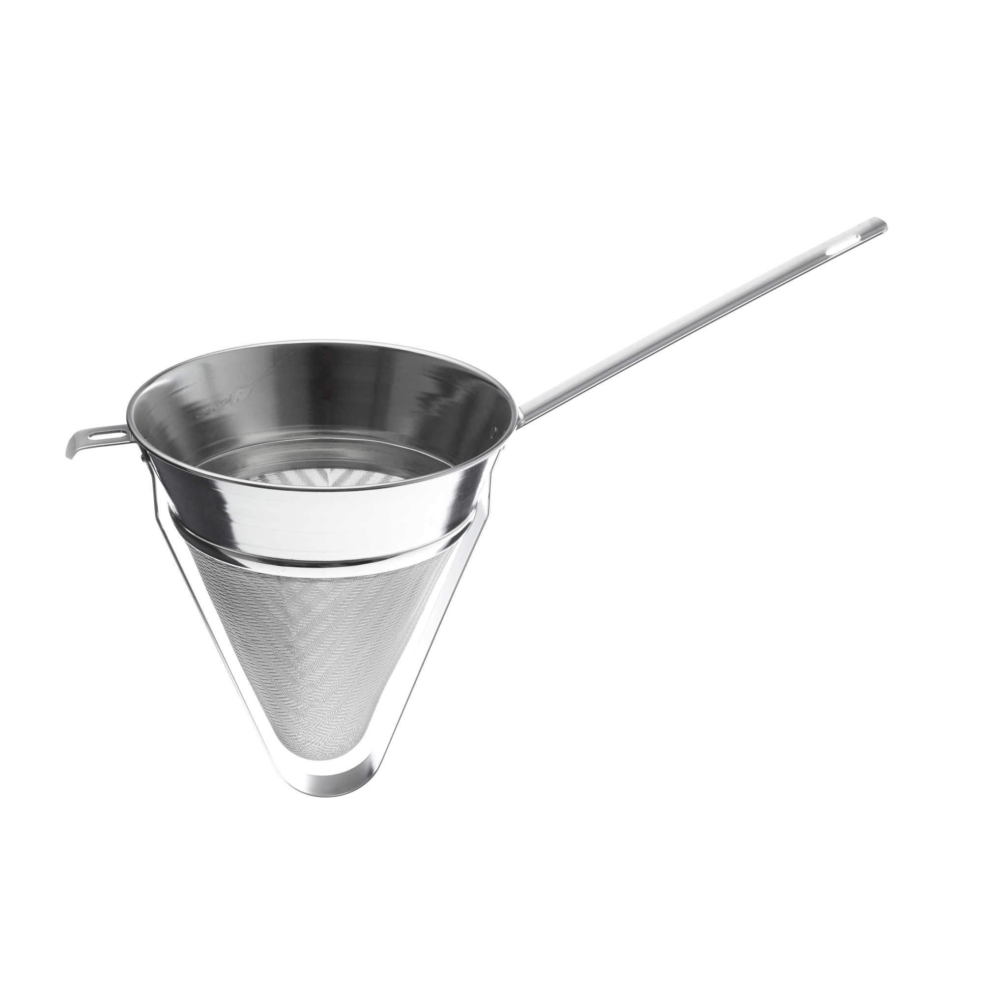 Ce chinois est muni de crochet et de patte d'appui ce qui lui permet d'être posé sur des récipients ronds. Maille à trous diam. 1.4 mm. Indispensable en pâtisserie, il permet de filtrer trés fin des gelées, des coulis ou de la crème anglaise pour enlever le germe de l'oeuf. En inox, il s'avère plus solide, plus hygiènique et plus facile d'entretien que l'étamine traditionnelle.Caractéristiques