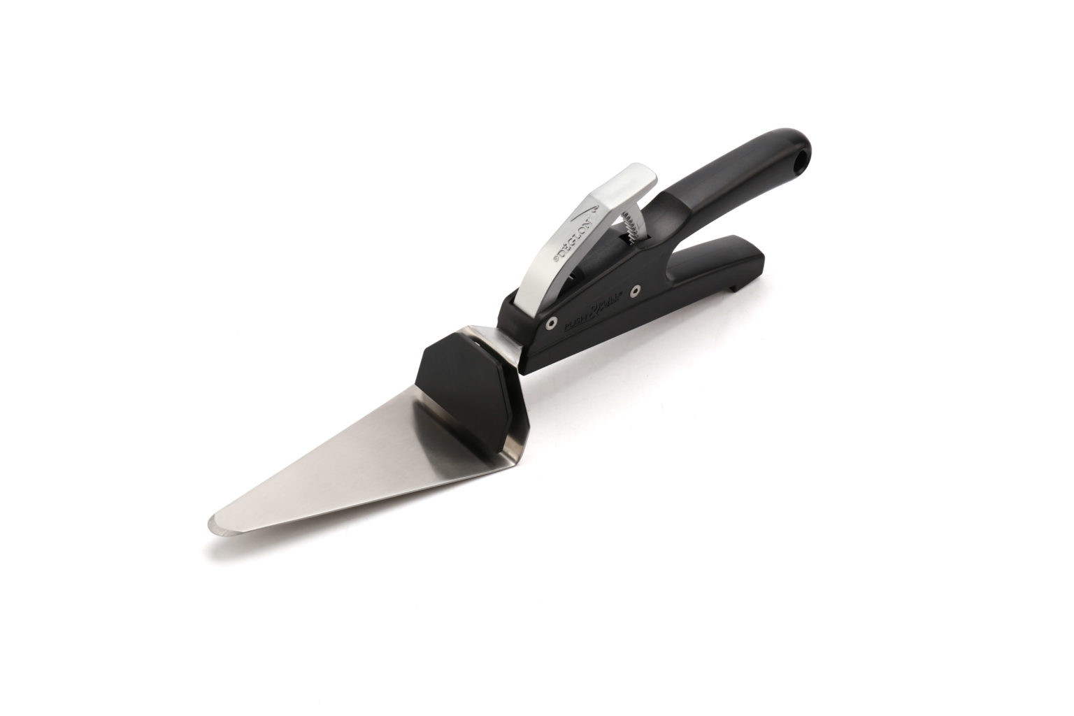 Doté d’un poussoir rétractable automatiquement, la pelle Push & Pull facilite un service rapide et de précision, tout en libérant une main destinée à d’autres tâches (verser une sauce, tenir une assiette, etc…)