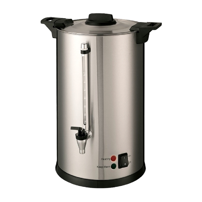Les points forts : Socle inox avec collerette anti-dérapante, deux poignées de transport, couvercle isotherme à système de blocage, filtre en inox, double paroi isolante en inox, robinet anti-goutte et tube niveau, système de maintien en température, thermostat de sécurité à réarmement automatique (au bout de 20 minutes environ), 2 voyants : de chauffe et maintien en température.